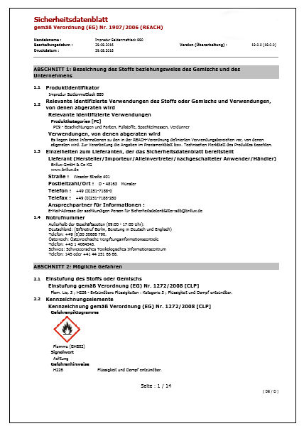 Wird ein Produkt, ein Gemisch oder eine Zubereitung als gefährlich eingestuft, muss ein aktuelles Sicheheitsdatenblatt beim Verwender vorliegen.